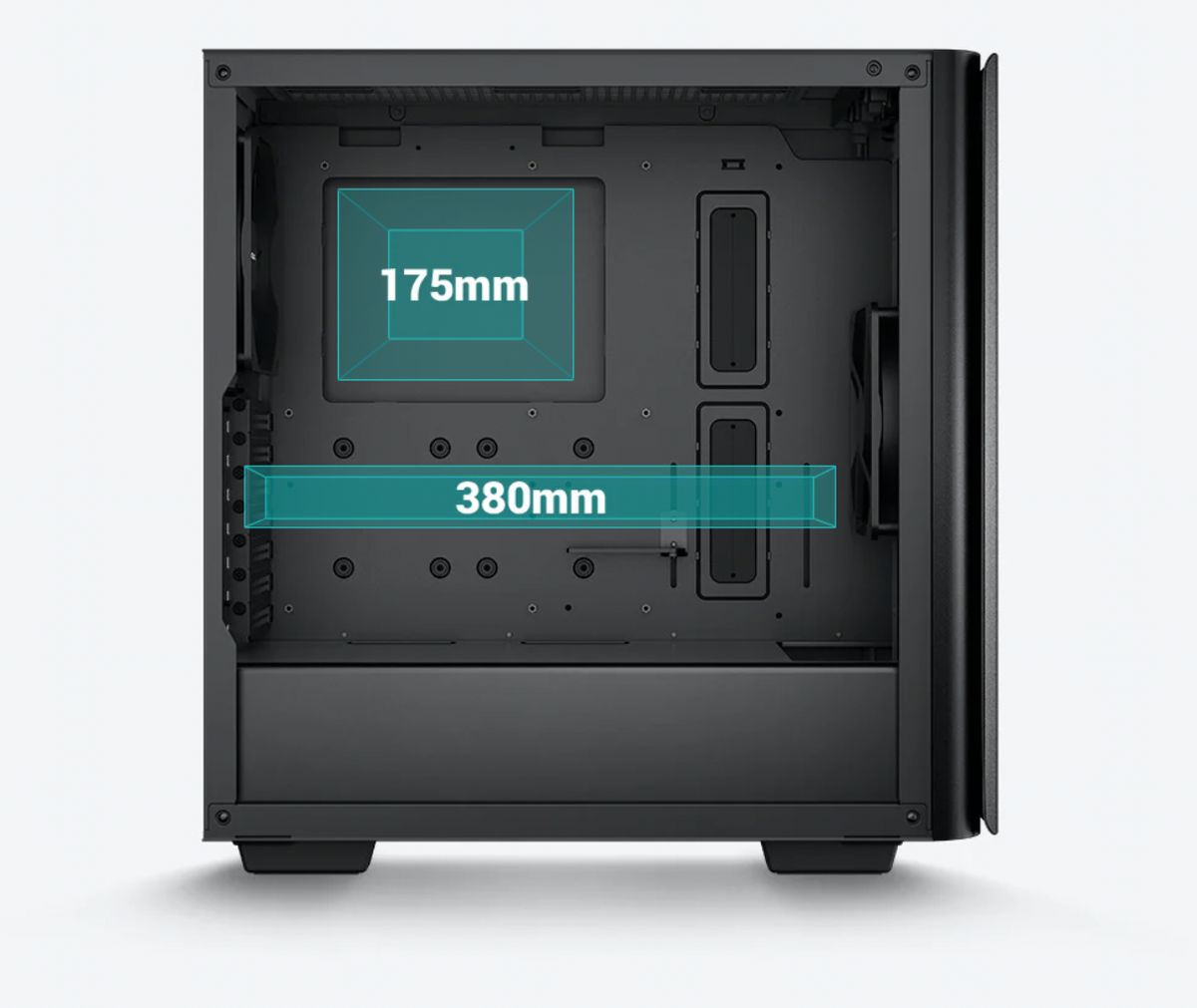 Maximize potential with flexible configurations that meet the needs of any system setup. With space for large GPUs up to 380mm and CPU coolers up to 175mm in height, the CK500 provides ample space without being too bulky.